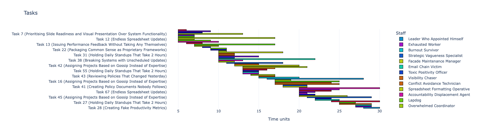 Team, What a week! I’m absolutely blown away by the relentless dedication and innovative spirit on display across the board. When I say we’re setting the standard for excellence, I mean it - even if the numbers, the feedback, and the sheer exhaustion on your faces might suggest otherwise. But let’s focus on the positives, because that’s what winners do! First off, a massive round of applause to everyone who made our Endless Spreadsheet Updates (Tasks 12 and 67) such a resounding success. Yes, I know it’s the third time this month we’ve had to redo them because someone - not naming names - kept moving the goalposts. But that’s agility for you! We’re not just updating spreadsheets; we’re reinventing them. Who needs functional systems when we’ve got your unwavering commitment to manual data entry? True heroes don’t need automation - they thrive on the grind.
